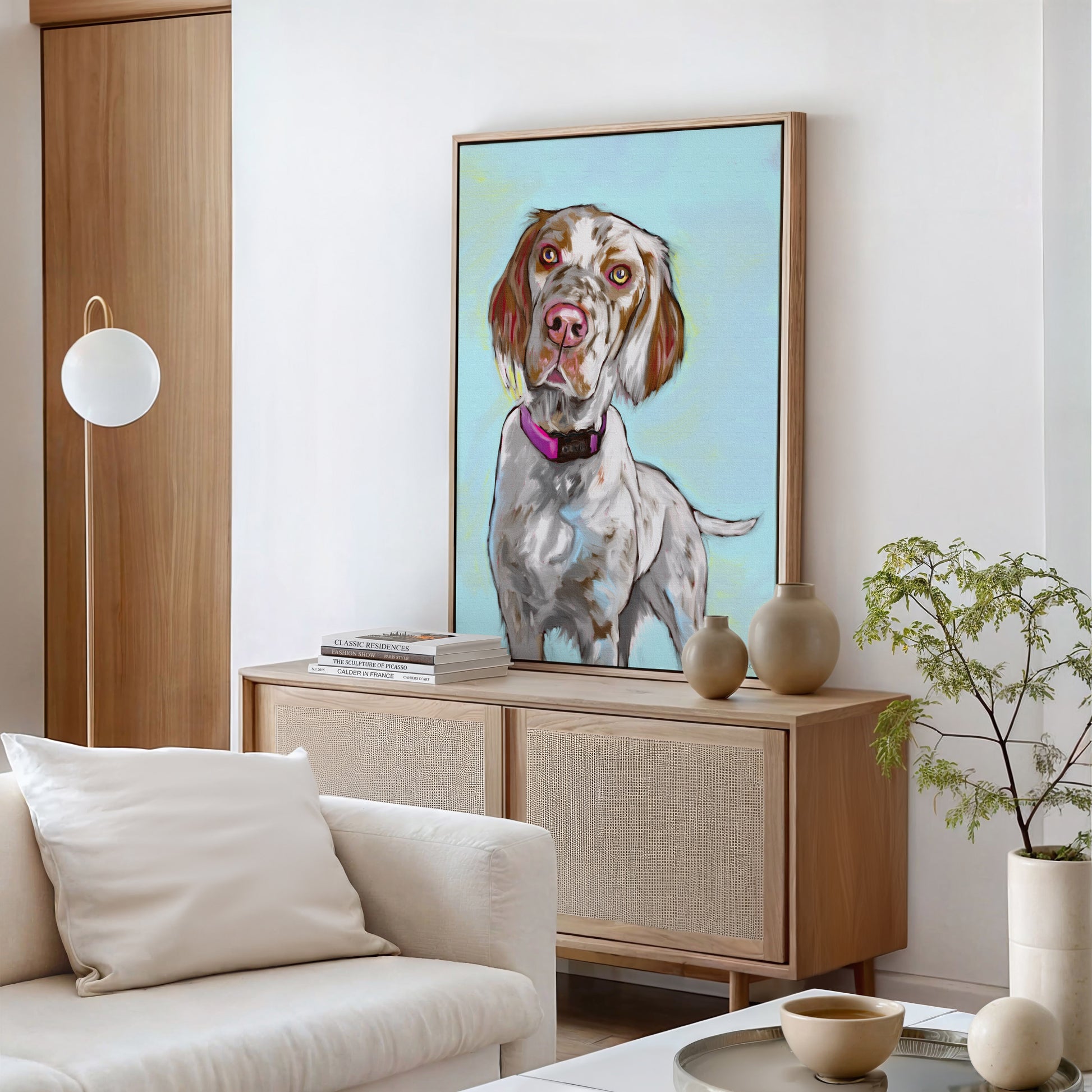 Honor your beloved pet with a custom oil-style portrait, illustrated by hand from your photo and printed on stretched canvas as a timeless keepsake.